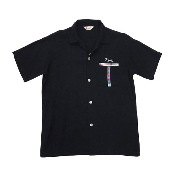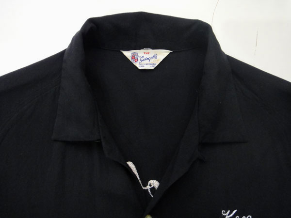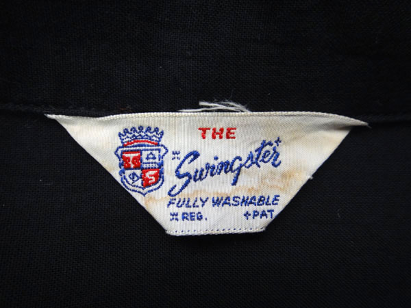 ■コメント 50年代頃のブラックレーヨンボーリングシャツになります。ブランドタグは「SWINGSTER」、バックは白と赤のチェーンステッチ2段。フロントポケットのT字リボンがポイント。大変貴重な一着です。お好きな方・お探しの方は是非ご検討ください。
