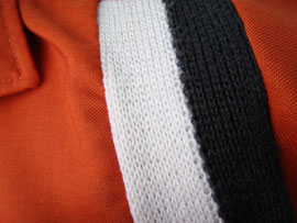 ・脇周りは黒、白のニット素材、同じく袖の裾に黒、白のパイピング!深い橙色のボディも魅力です。